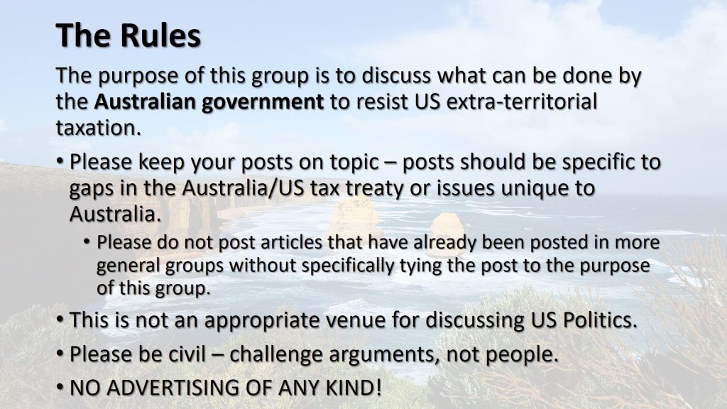 These rules can also be found in the pinned post on the FB group https://www.facebook.com/groups/FixTheTaxTreaty/